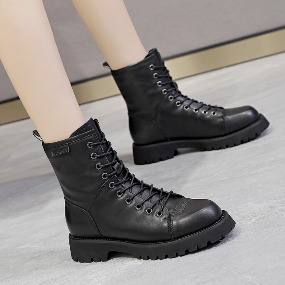 Autumn New Martin Boots Female Round Toe Thick Bottom Tube Black Short Boots Trend