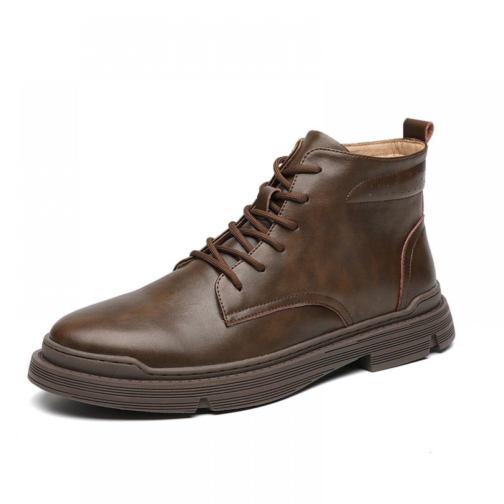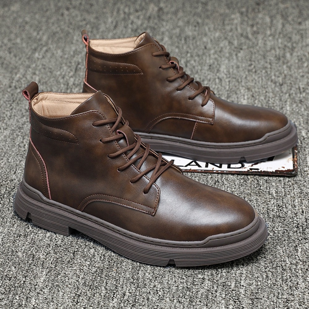 Martin Boots Men's Breathable High-Top Leather Shoes Middle Cut Mens Boots Tooling Boots Leather Boots Leather Short Boots