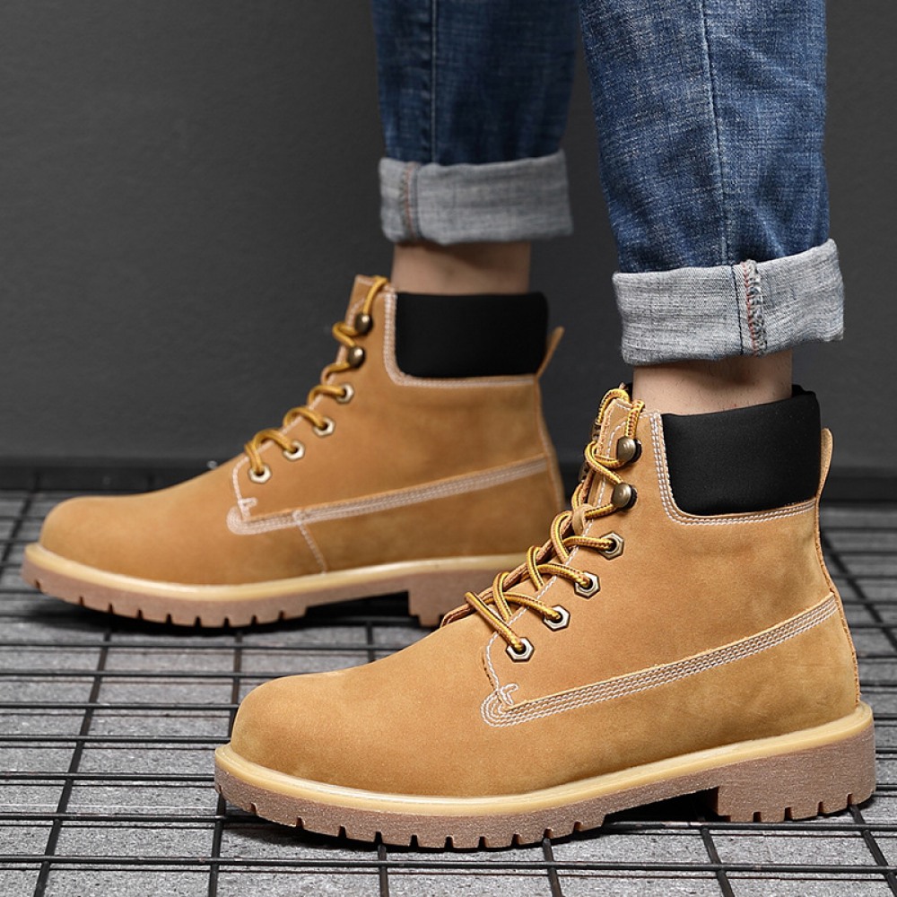 Men's Mid-Tube Boots Trend Middle-Top Martin Boots Autumn British Tooling Men's Shoes High-Top