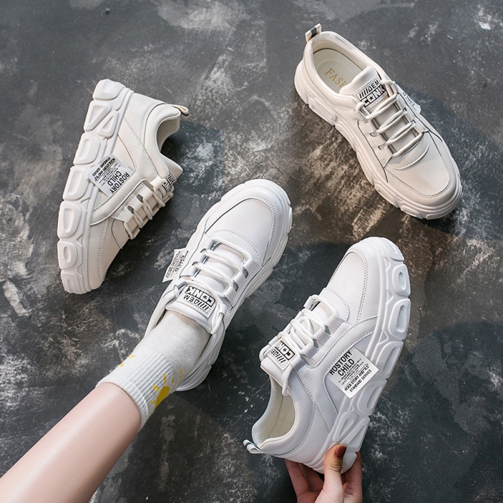 White Shoes Female Spring New Heightening Student Running Board Shoes Female Breathable Lace