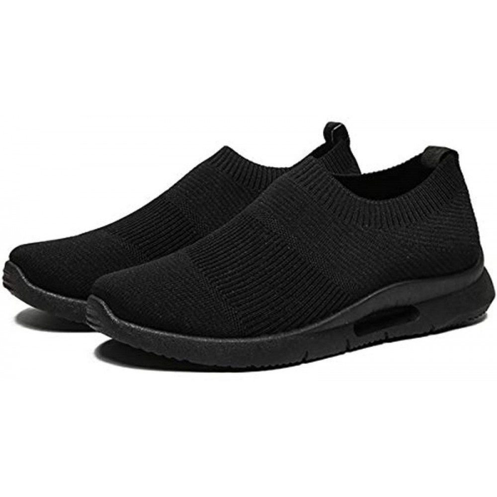 Men's Running Shoes Breathable Knit Slip On Sneakers Lightweight Athletic Shoes Casual Sports Shoes High Top Black