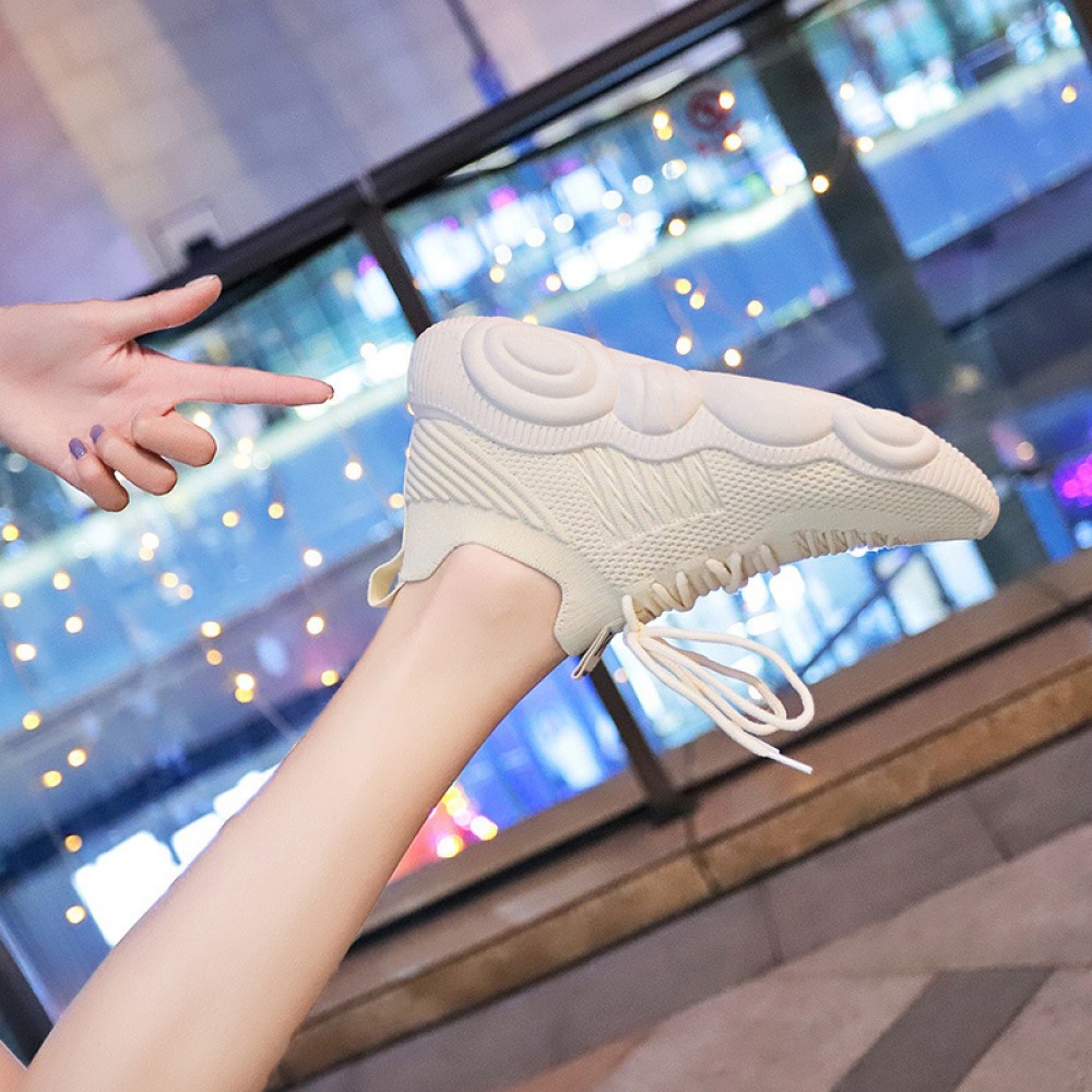 Summer and Autumn New Sports Shoes Female Flying Woven Student Running Shoes Breathable Socks Shoes Women